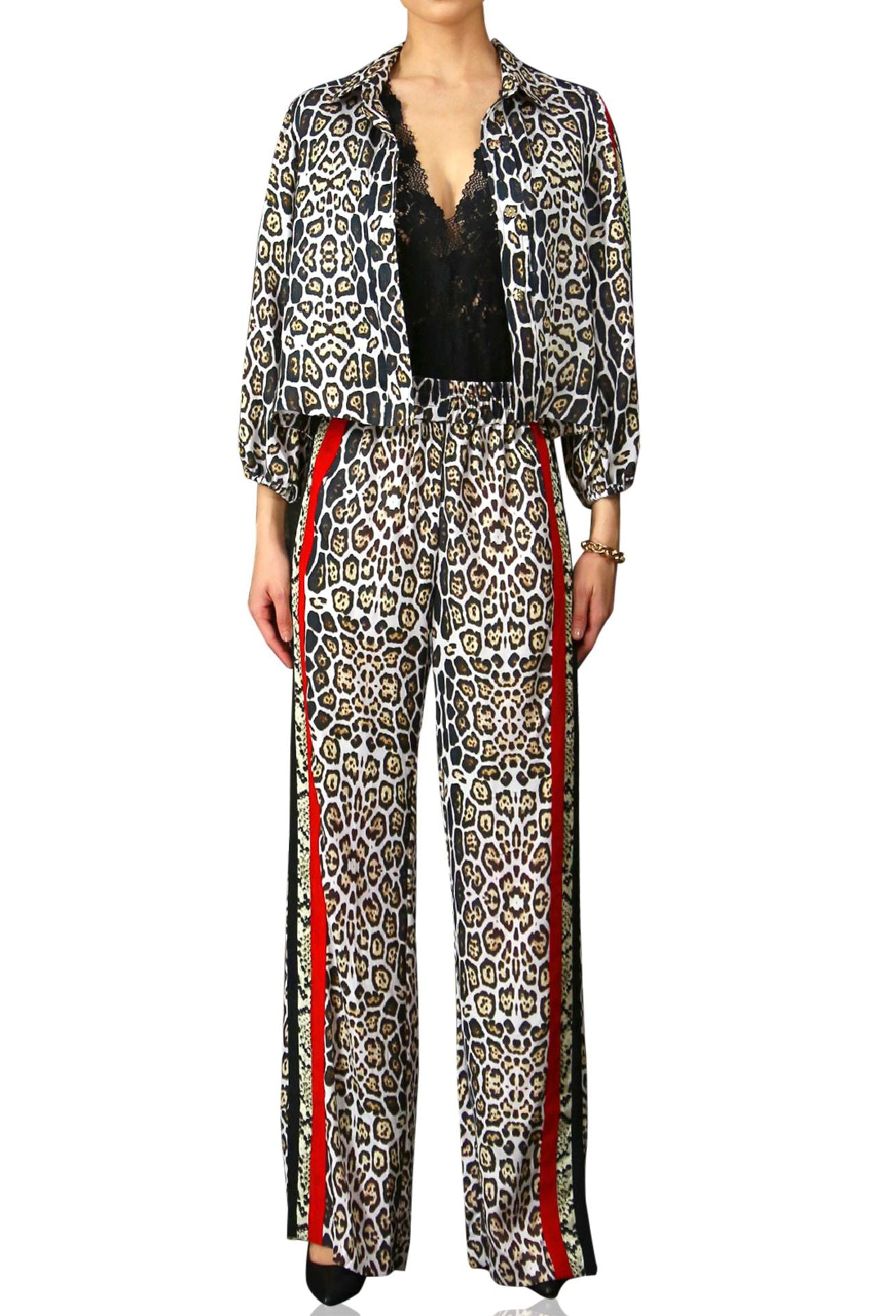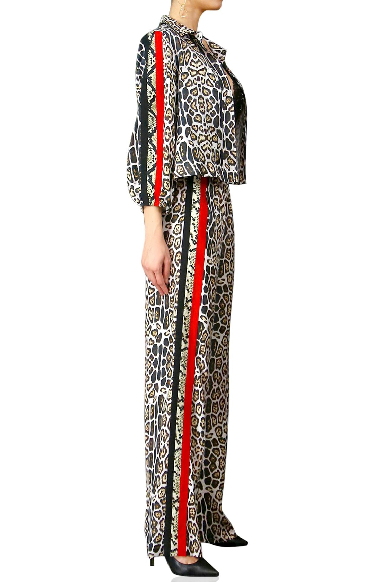 - Leopard-print side stripes in multi color