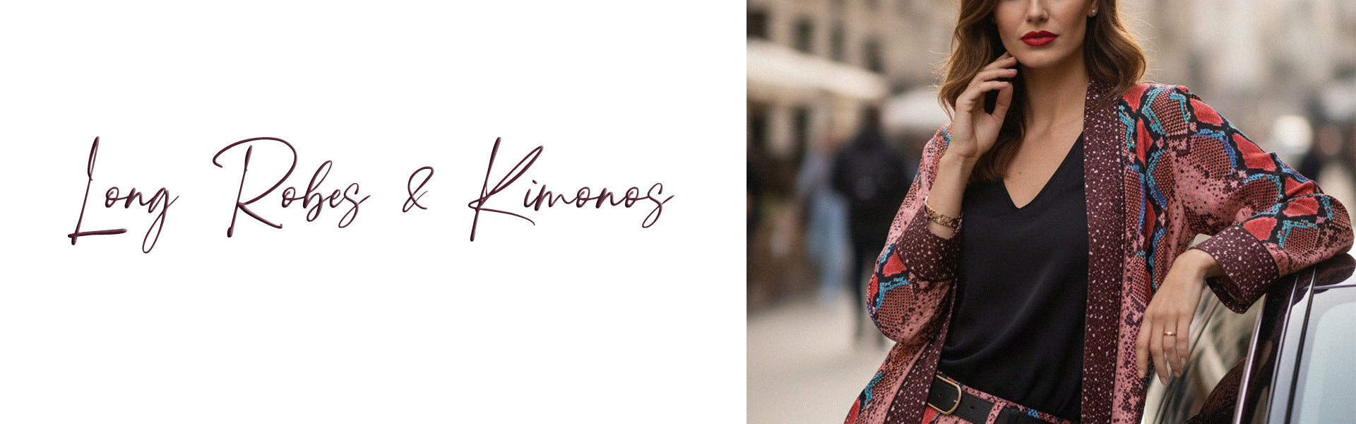 Discover the ultimate statement layering piece with our Long Robes & Kimonos collection—featuring flowing long kimono robes, luxe silk duster robes, bold printed silk kimonos, and elegant belted robe-dresses crafted for women who embrace high-fashion with ease. Each garment is designed using premium fabrics like cupro-silk, vegan-silk or satin, offering rich prints, dramatic lengths and refined silhouettes. Ideal for resort wear, travel or elevated lounge, these designer robes & kimonos pair seamlessly with our slip dresses, tops & tunics, and designer bottoms to complete your curated wardrobe with effortless sophistication.