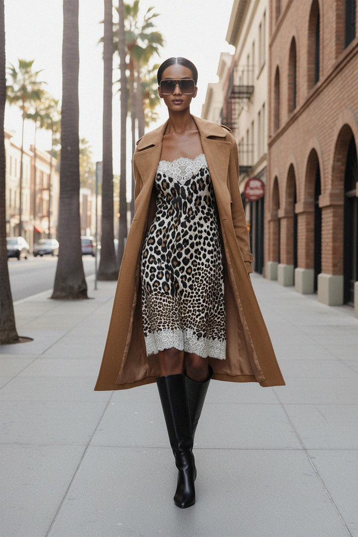 Animal Print Effortless Style with Lace Trim Cami Dress