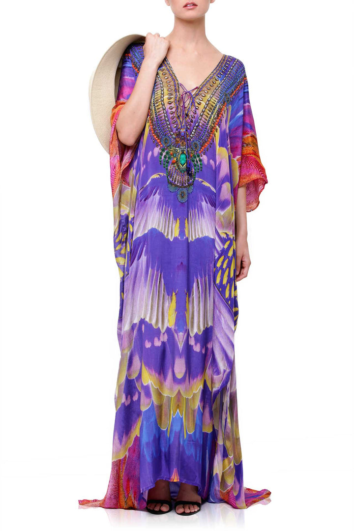 Get ready to enjoy your vacations where you can carry these clothes for beach vacation, for the summer vacation outfits, where silk caftan dress adds a touch of elegance, at Shahida Parides.