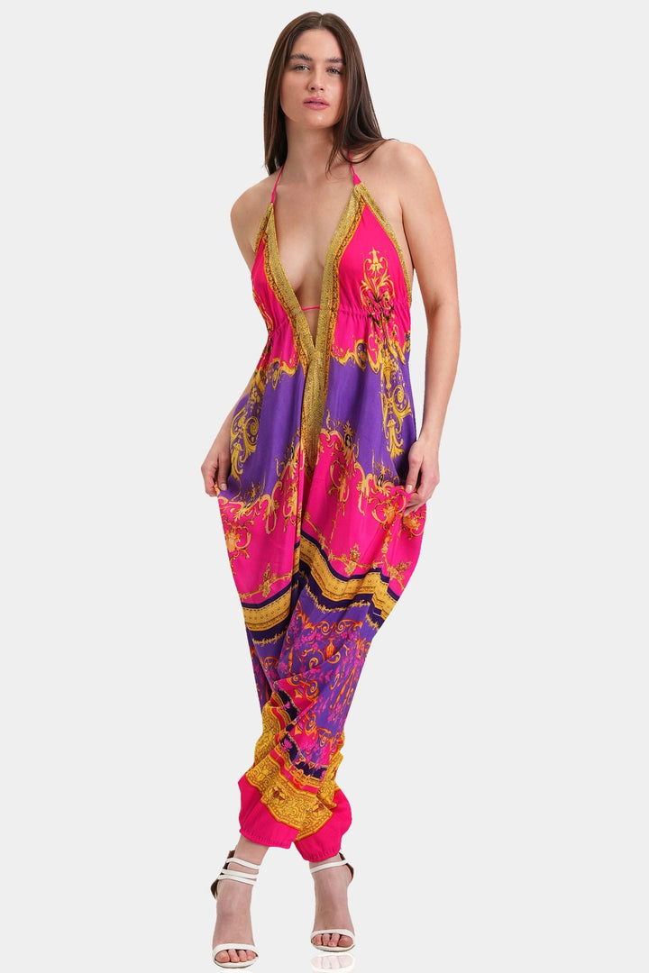 Halter V Neck Harem Jumpsuit