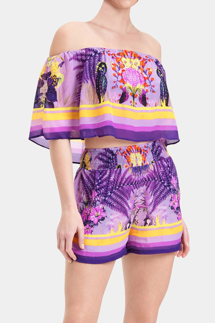 The off-the-shoulder detail adds a little extra fun to this crop top.