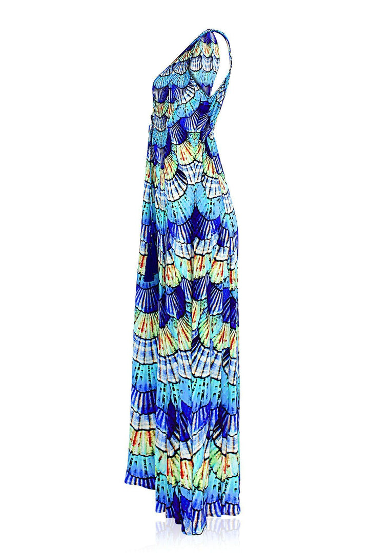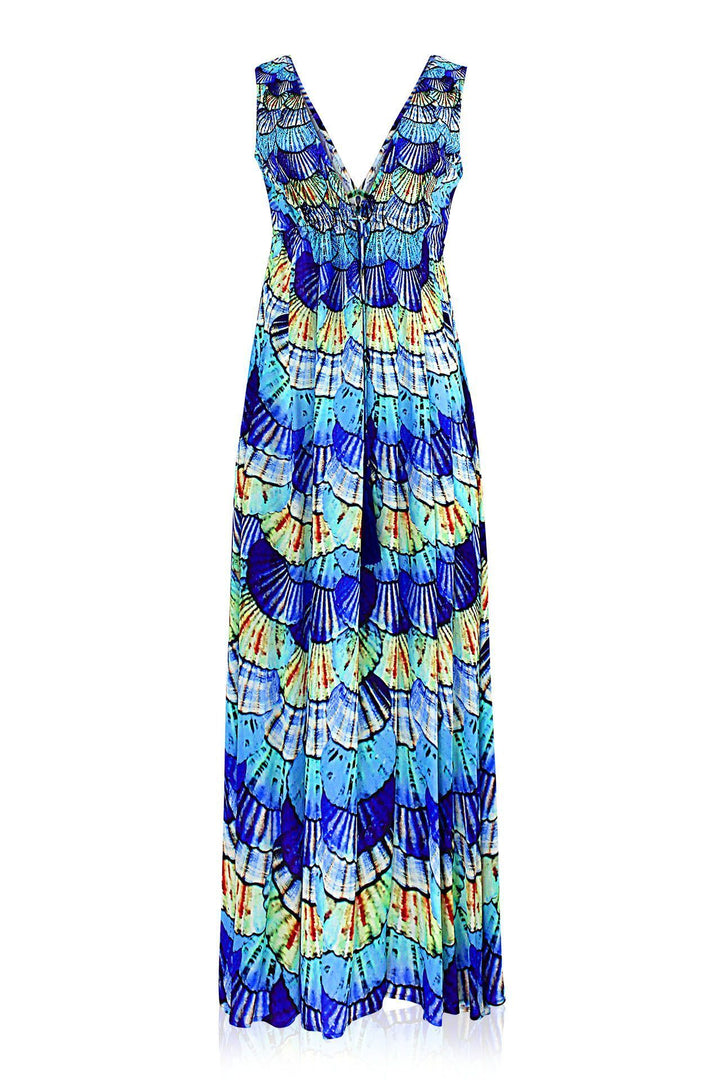 As Seen on Paris Hilton Designer V Neck Maxi Dress in Blue