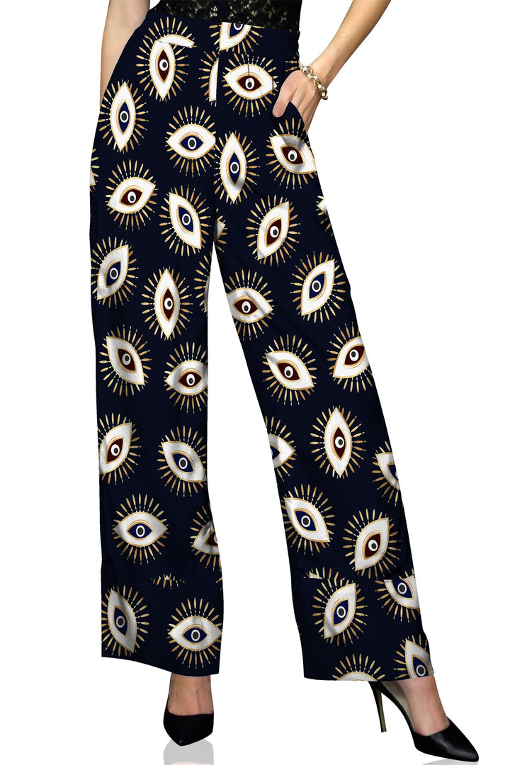 Crafted with precision and attention to detail, our Black Evil Eye Printed Pants are made from high-quality fabric, ensuring both comfort and durability. These printed pants black and white feature a sleek black canvas adorned with eye-catching prints.