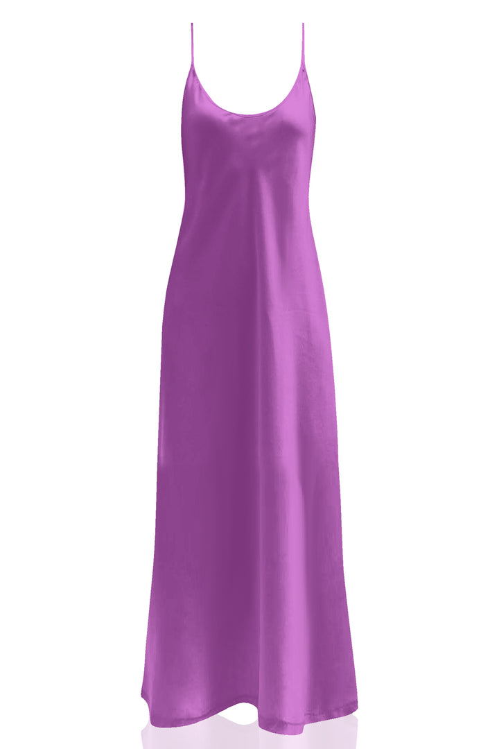 "slip dress purple" "long camisole dress" "Kyle X Shahida" "long silk slip dress"