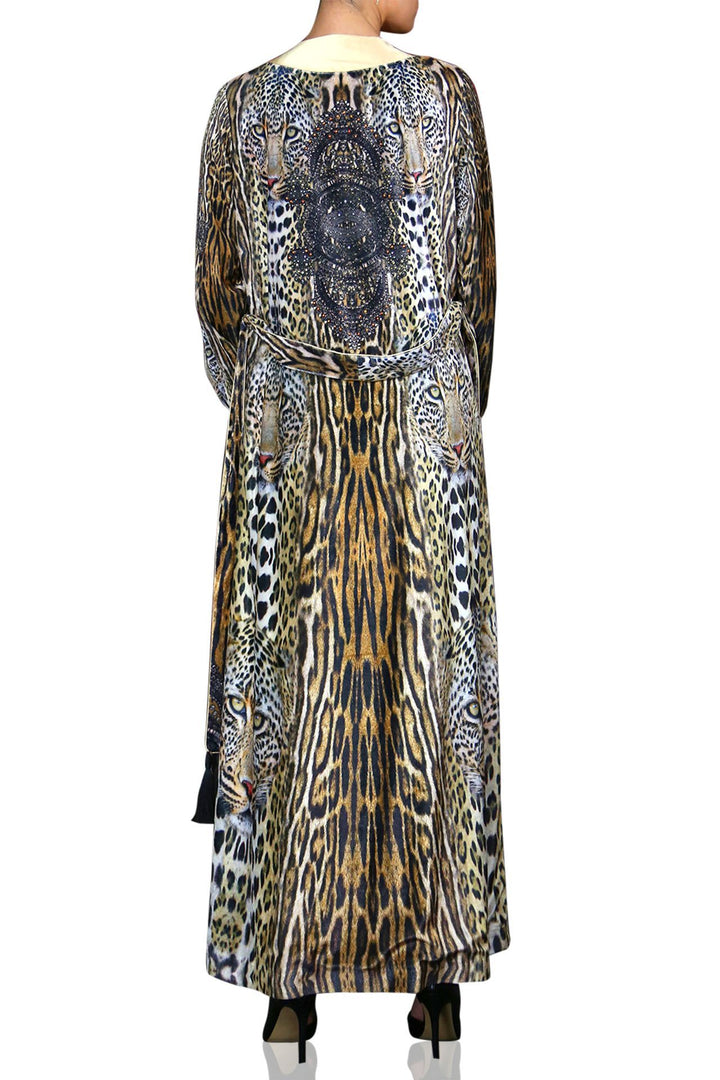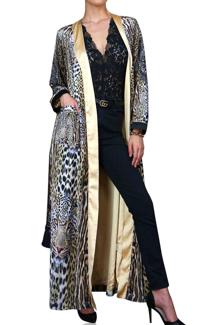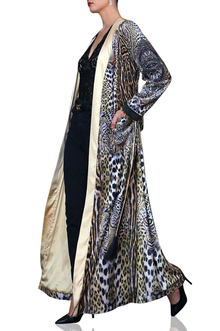 Stylish & designer luxury kimonos at Kyle X Shahida, which animal print silk robe made this more attractive and elegant whenever you wear this designer robe womens.