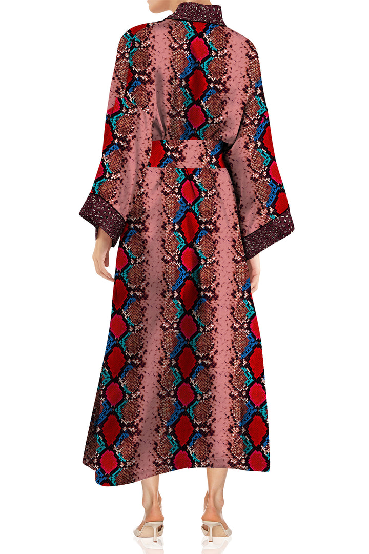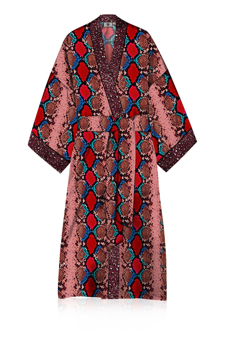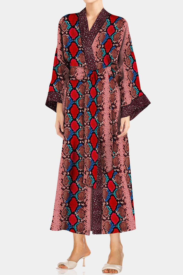 - Kyle x Shahida long satin robe with Nature Print contrast Color