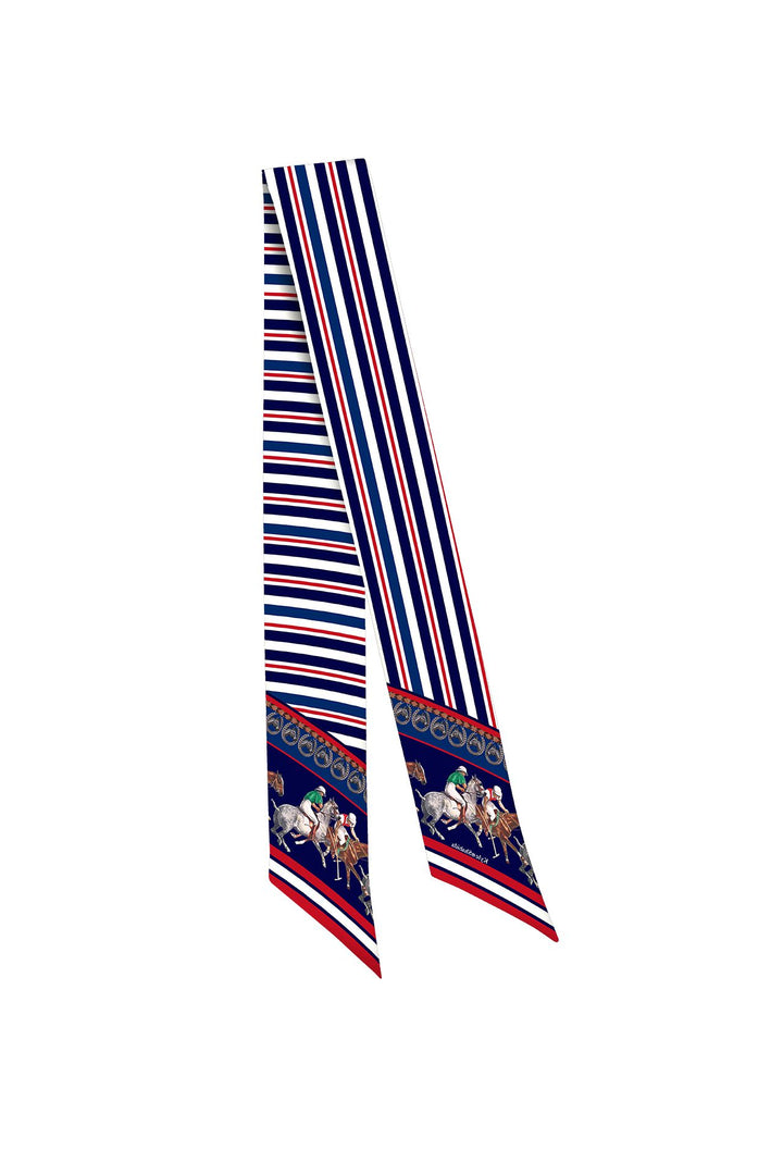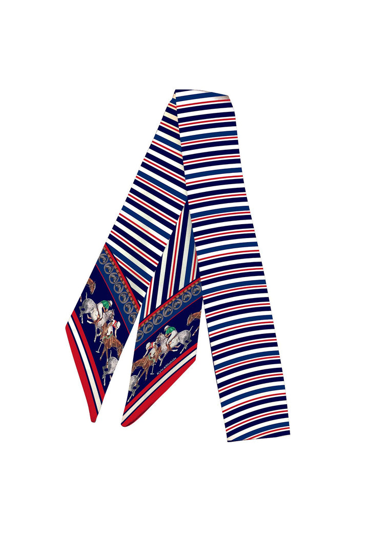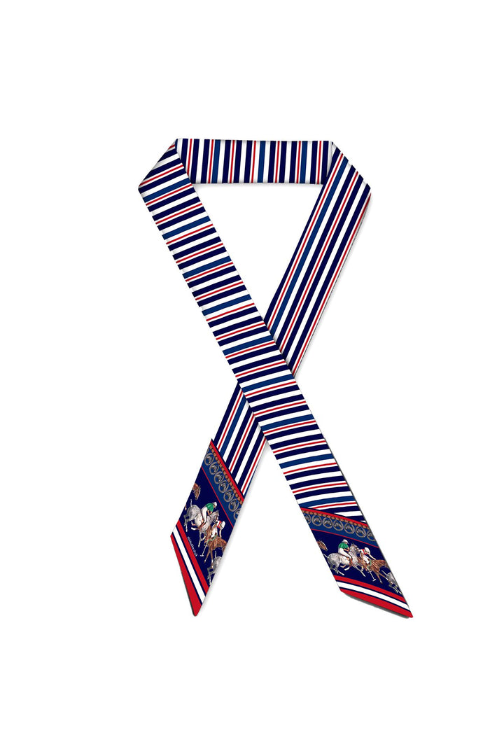 Designer Twilly Horse Print Scarves Blue and White