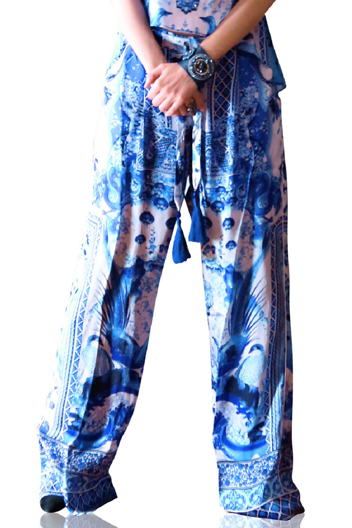 - Printed pull on Silky pants.