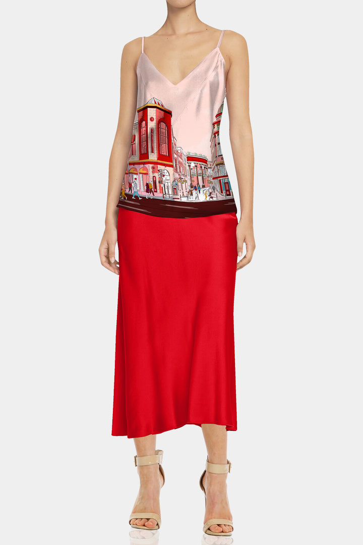 The red color is bold and eye-catching, adding a touch of romance and style with midi skirts for women, to your outfit at Kyle X Shahida.