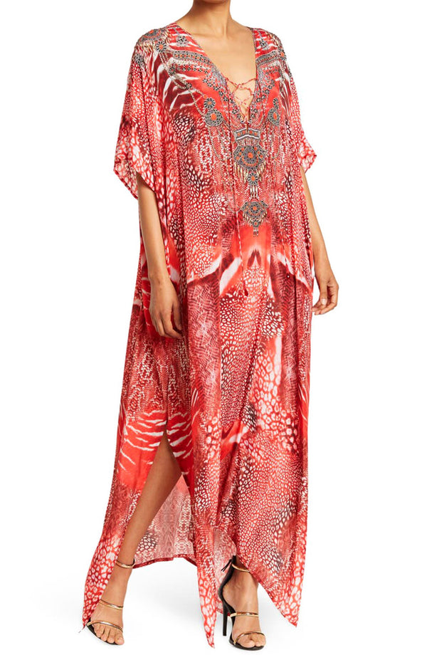 Top Trending Leopard Print Red Kaftan As Seen on Kyle Richards