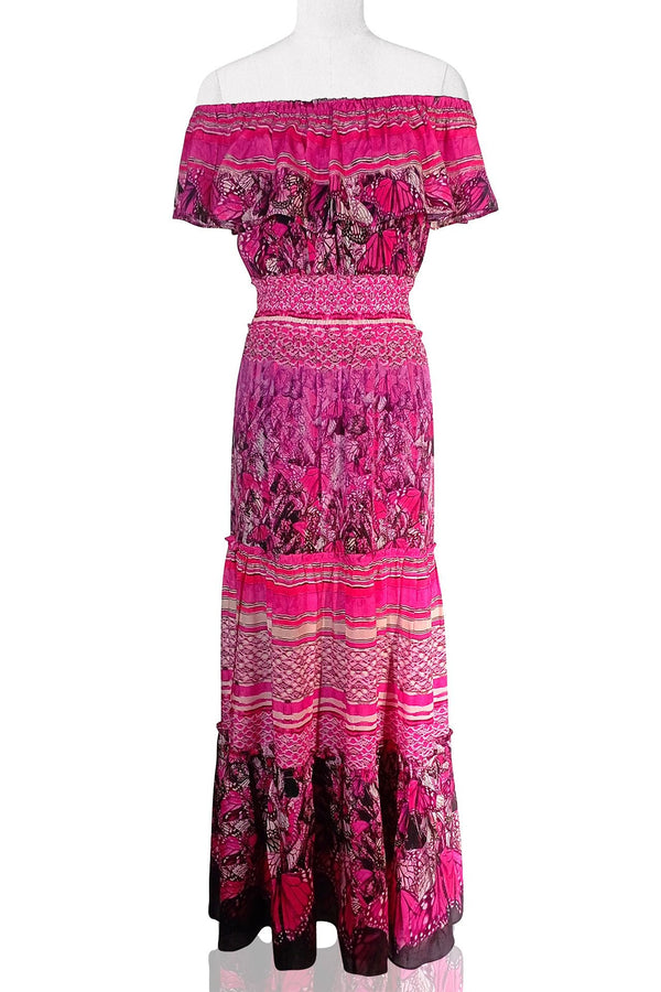 Off the Shoulder Ruffle Maxi Dress in Fuchsia