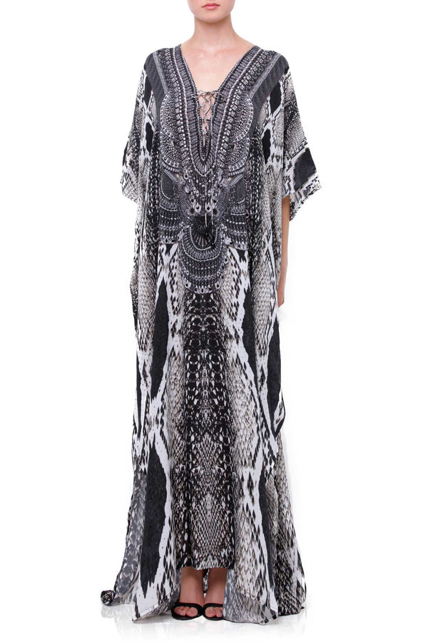 As seen on Kyle RIchards Black and White Snakeskin Kaftan Dress