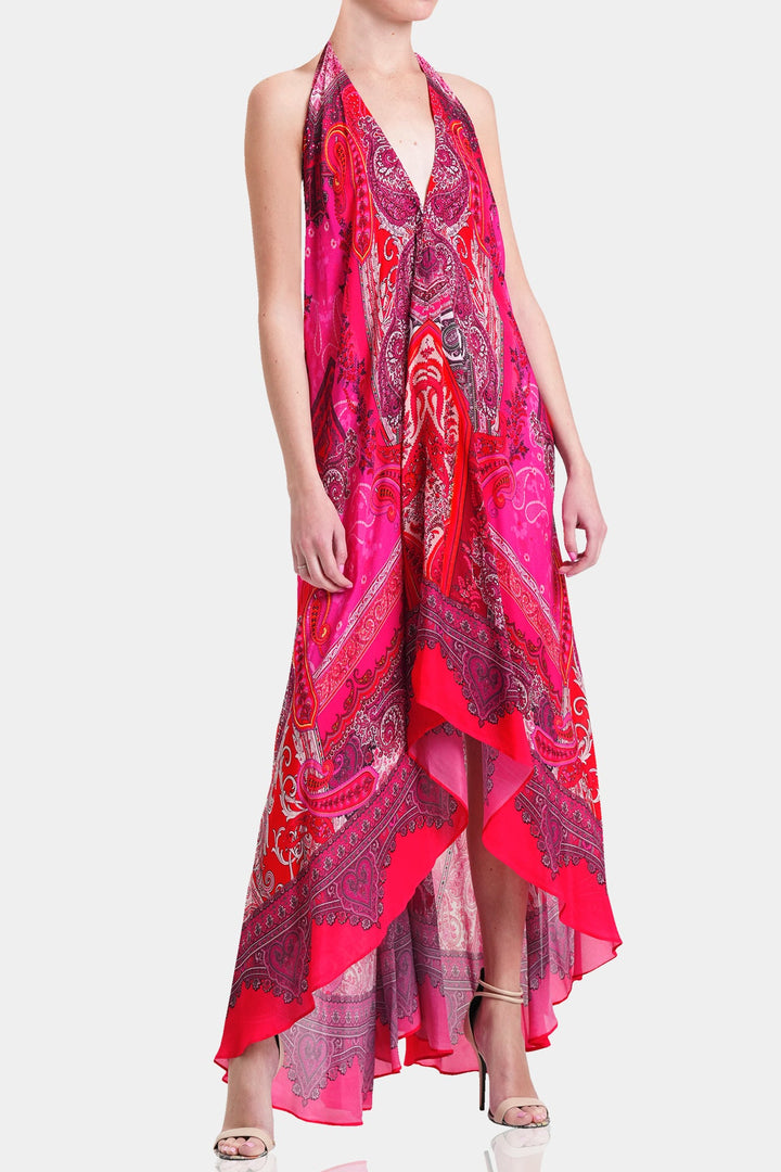 A multicolored and multi patterned maxi dresses that can be used in multi ways -