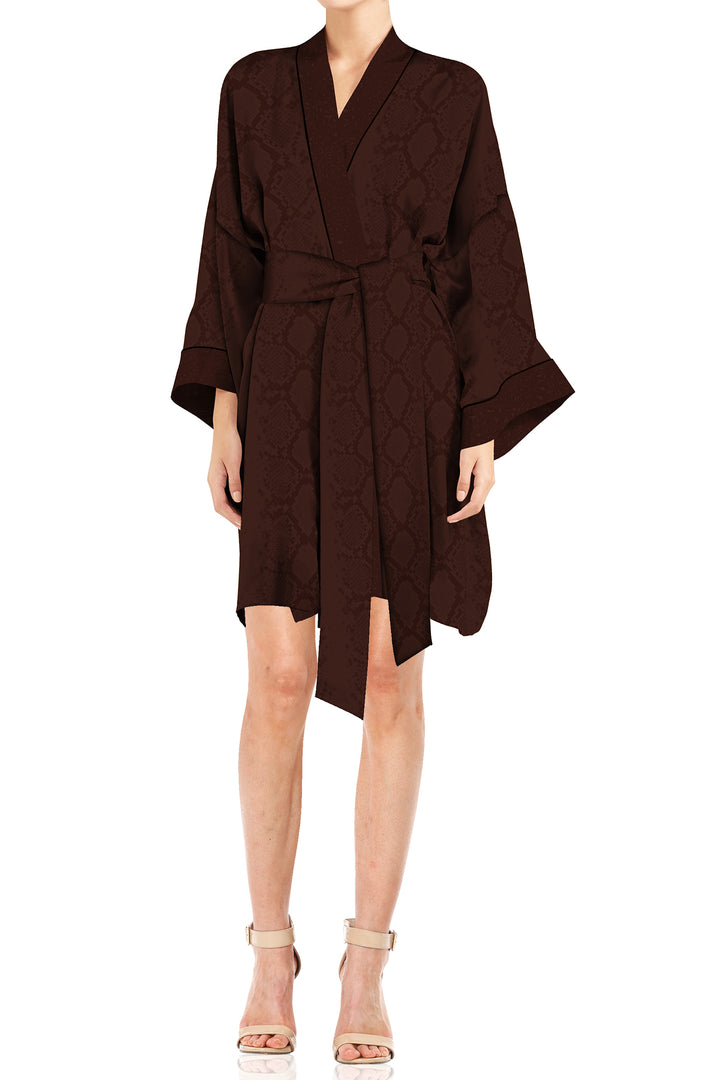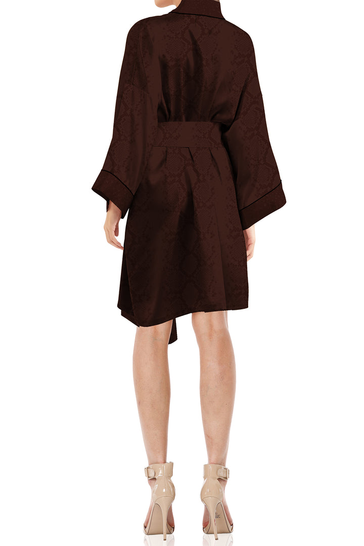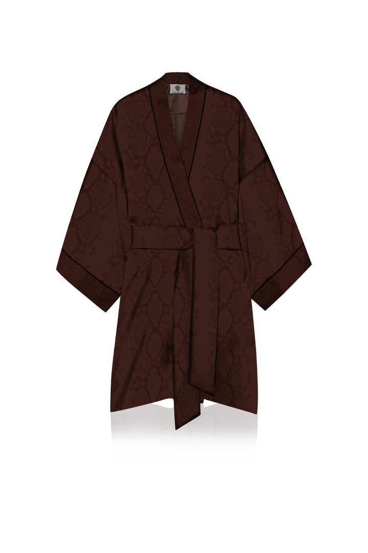 - Kyle x Shahida long satin robe with Nature Print contrast Color