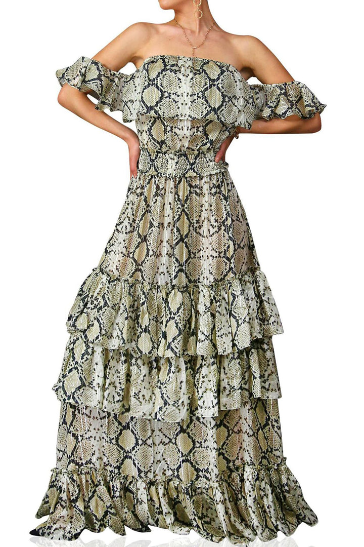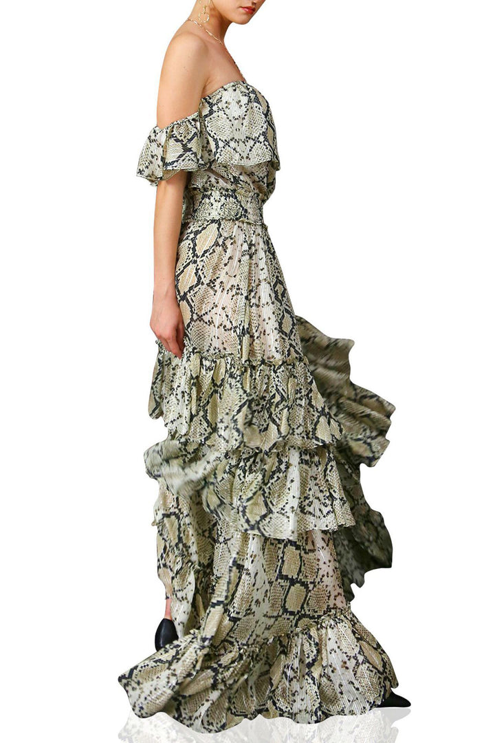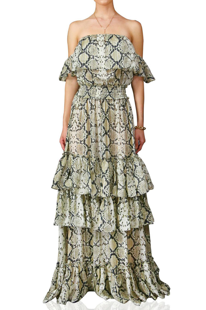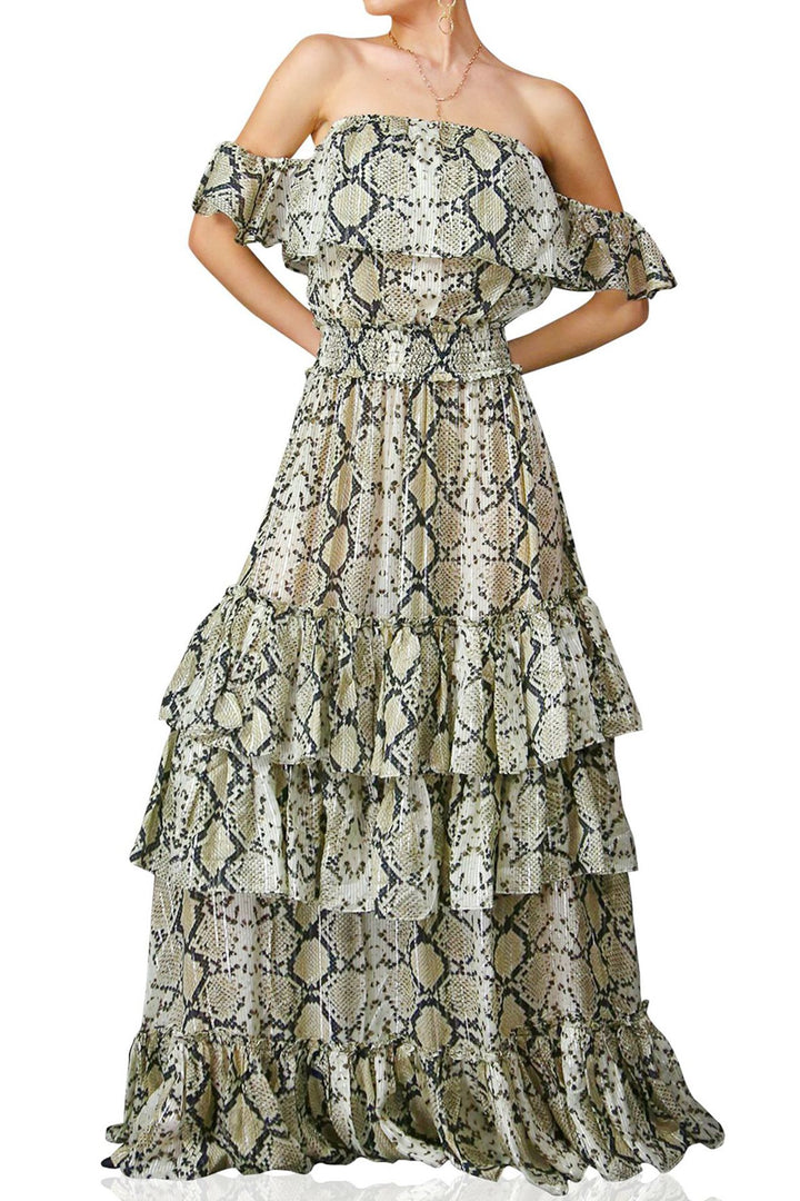 Snake Print Off the Shoulder Maxi Dress - Kyle Richards