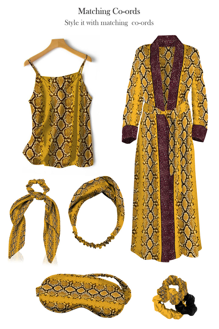 A Gift set of bestseller products. Snake Print Collection Gift Set. This Gift Set includes a Matching Sets +  Cami Midi Dress +Eye Mask + Scrunchies + Headband all perfectly designed by Kyle and Shahida. Get the best gift for her from our latest collection of gift sets.