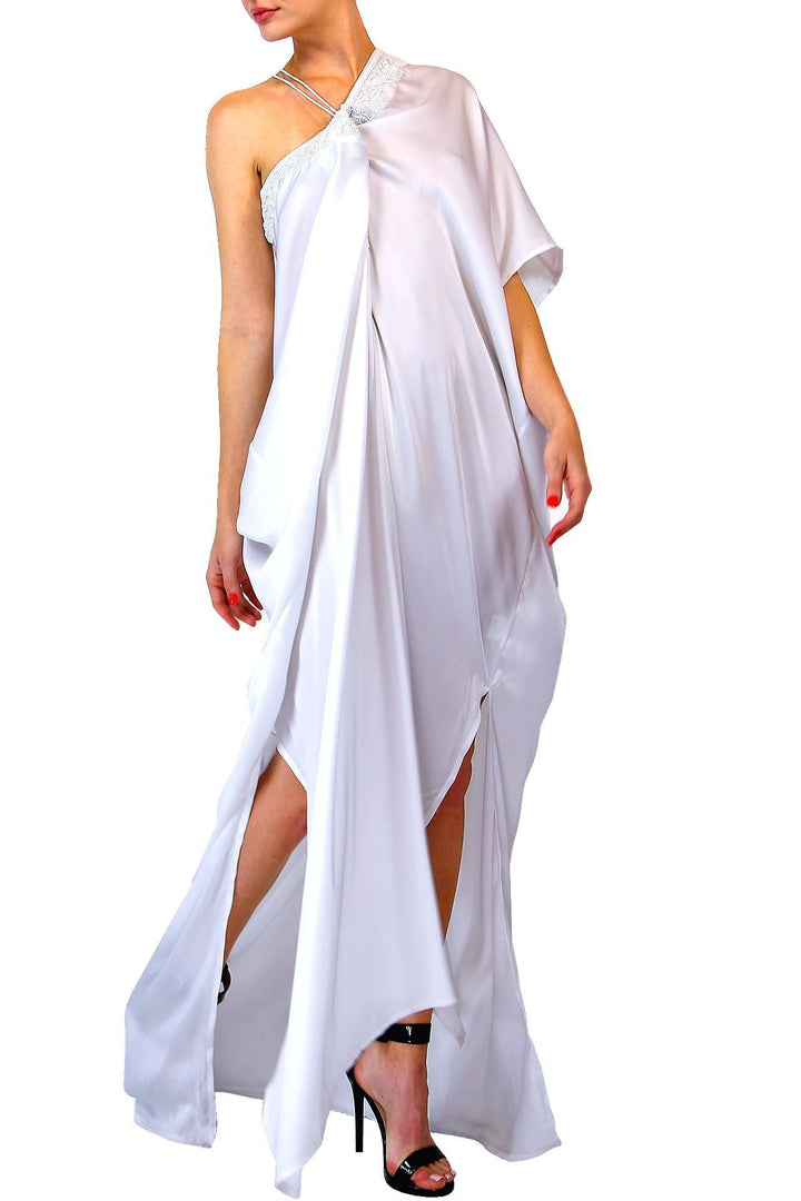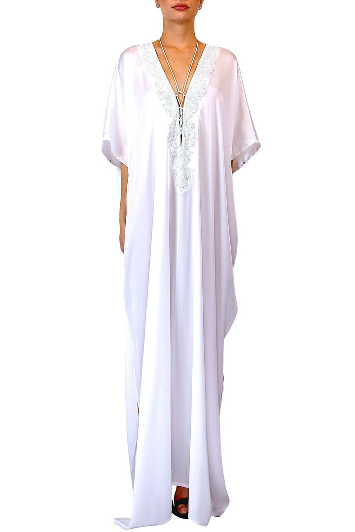 White Lace Up V Neck Kaftan