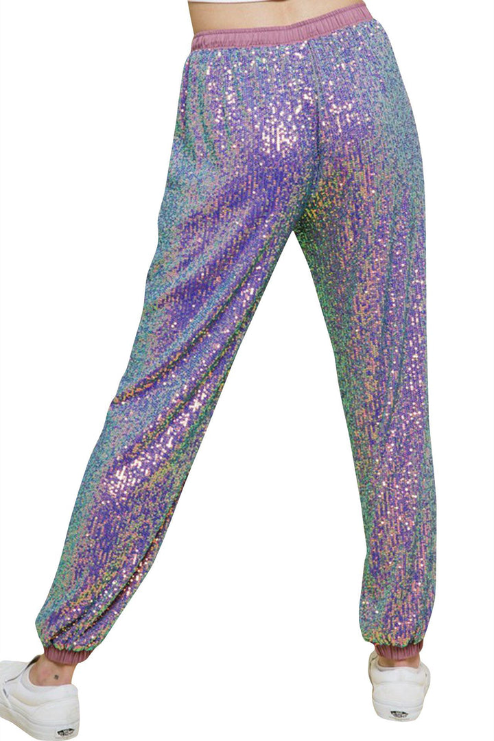"high waist sequin joggers" "plus size sequin joggers" "women's sequin jogger pants"
