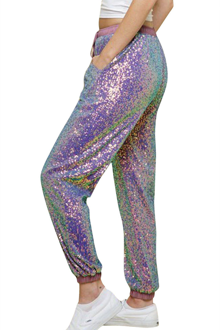 "sequin pants joggers" "sequin jogger pants women" "womens plus size sequin joggers"