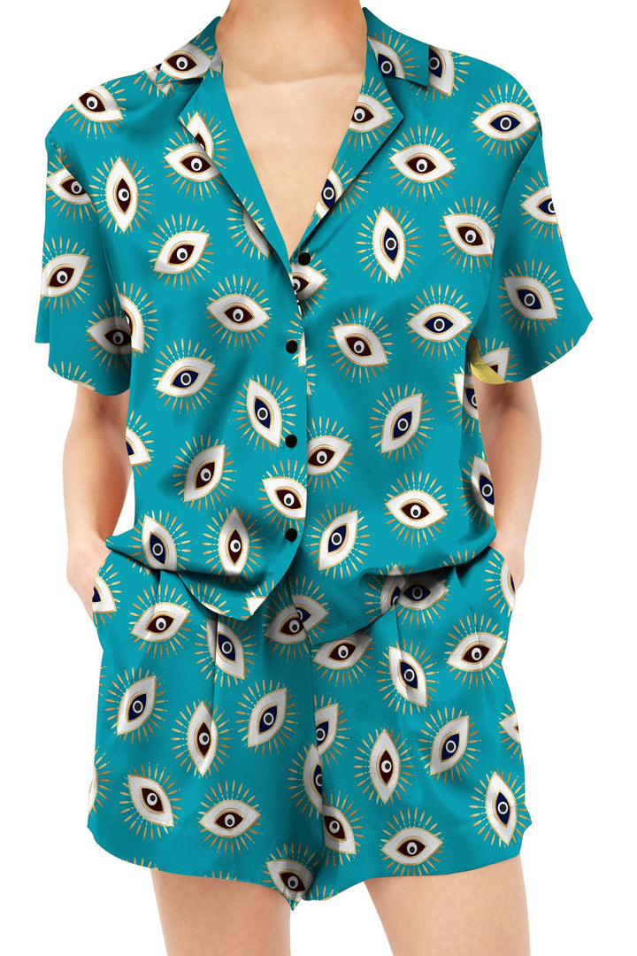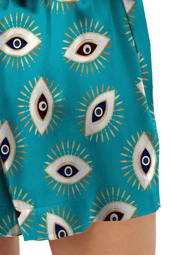 "sexy shorts for women" "wide leg shorts womens" "Kyle X Shahida" "evil eye print"