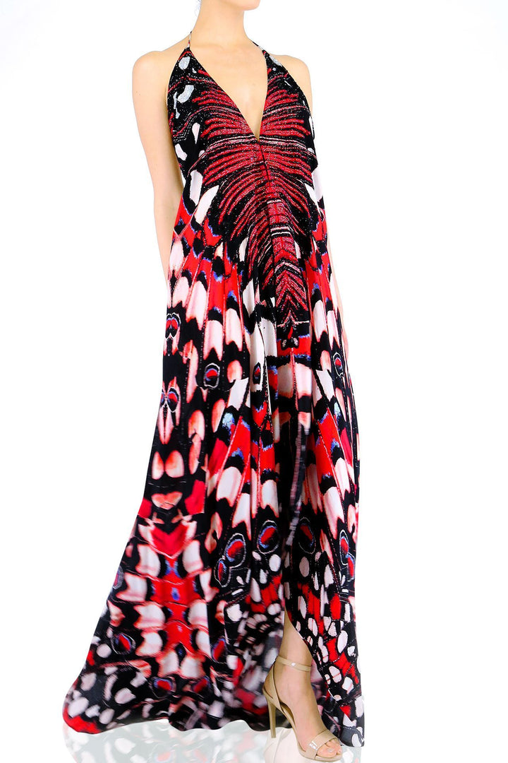 Multicolored and multi patterned maxi dress that can be used in multi ways