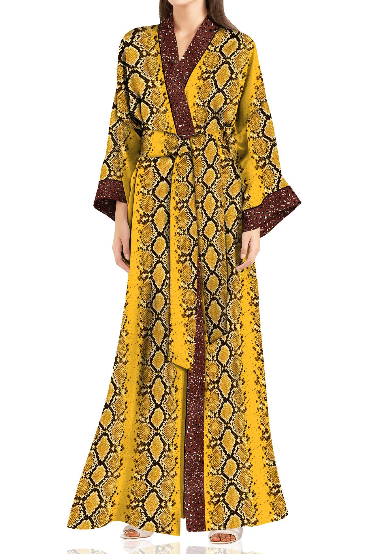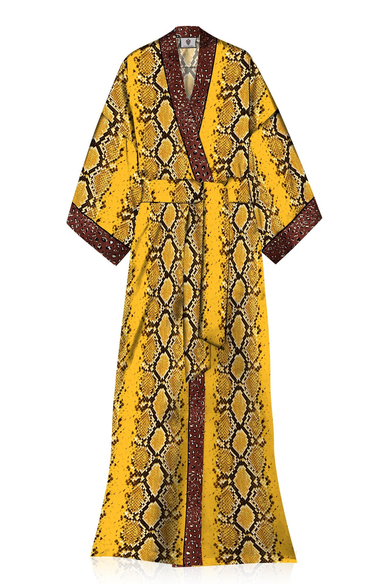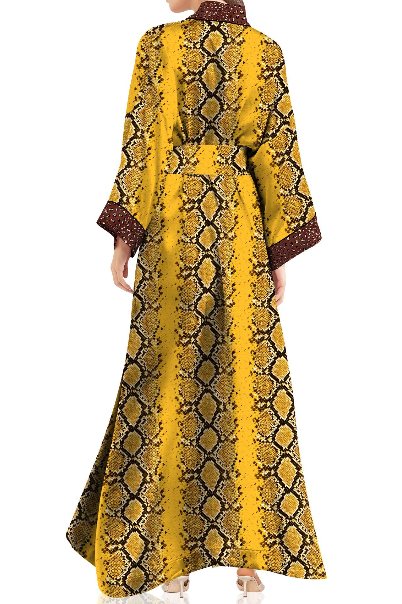 • Kyle x Shahida long satin robe with Nature Print contrast Color