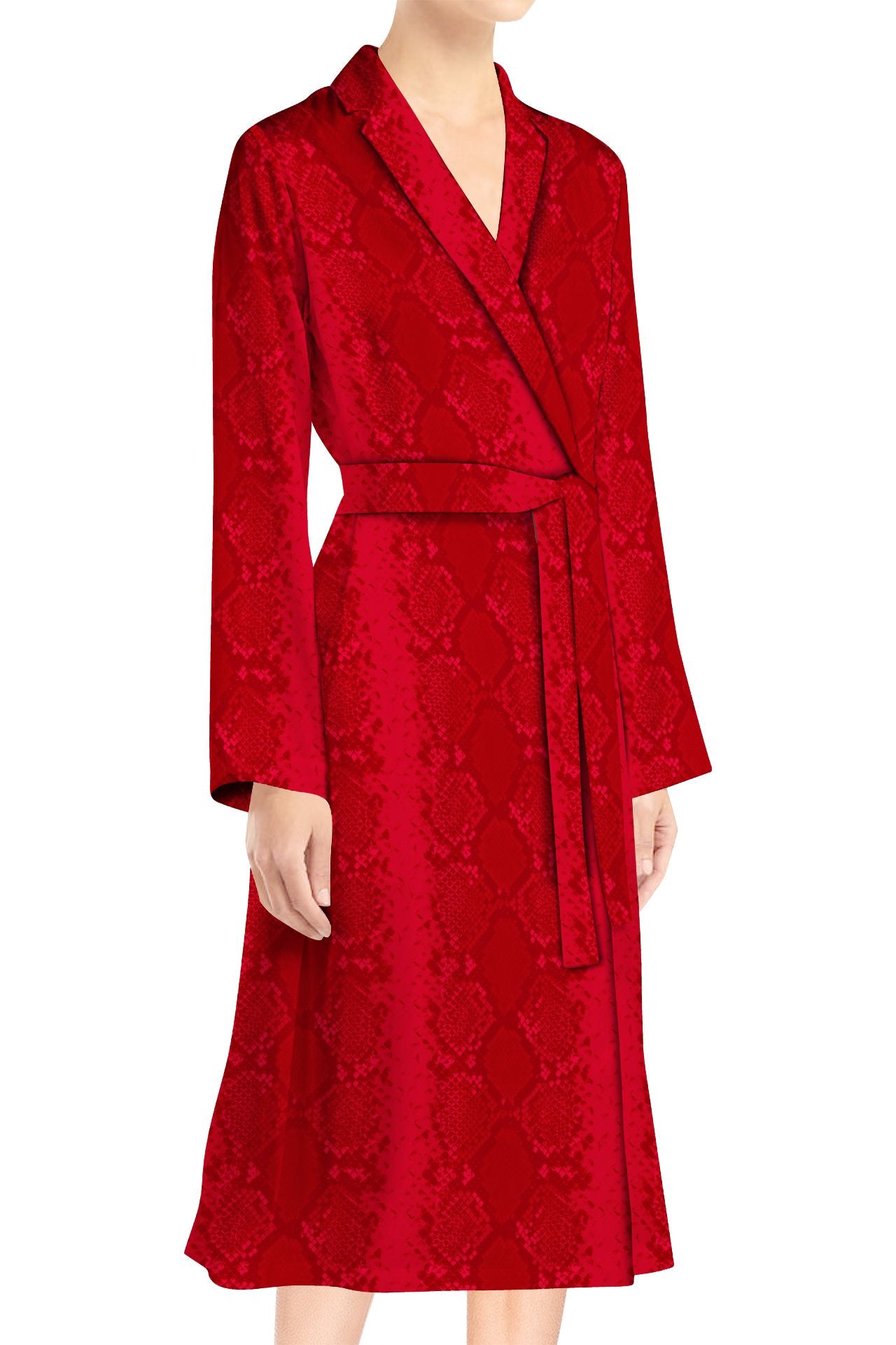 blood stone dress, cupro vegan silk, midi wrap dress, shahida kyle richards, sustainable womenswear, designer eco dress