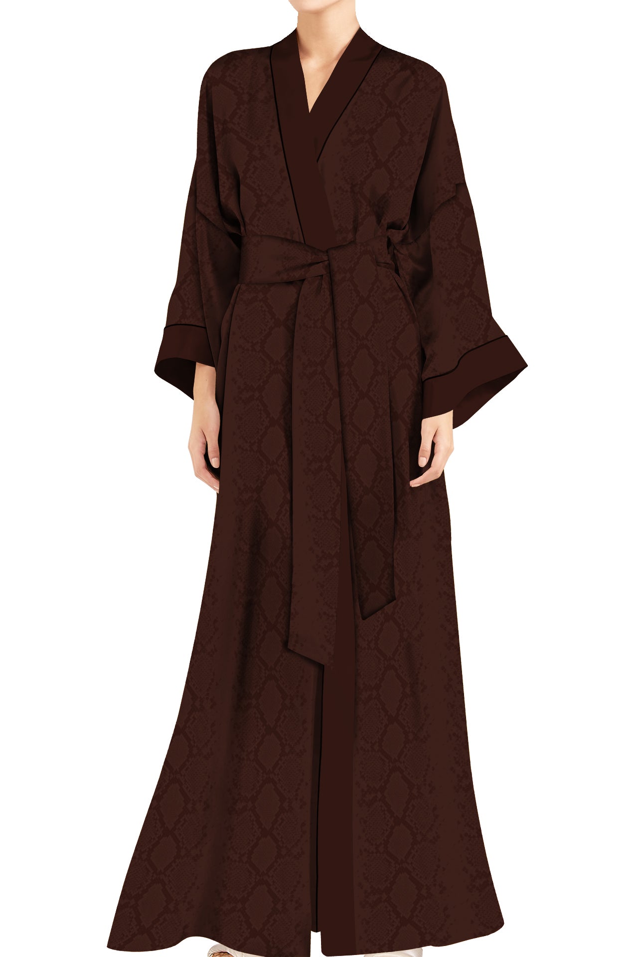 • Kyle x Shahida long satin robe with Nature Print contrast Color